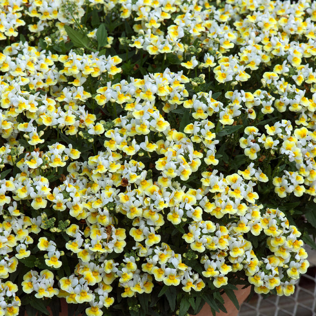 Nemesia 'Banana Split' is a charming plant that adds bright color to any garden or container. Its delicate flowers feature cheerful yellow and white shades, bringing a fresh, sunny feel to your outdoor space. Easy to grow and maintain, this variety thrives in well-drained soil and full sunlight, making it perfect for beginners and experienced gardeners alike. Its compact size suits borders, pots, or window boxes, offering continuous blooms that brighten your garden throughout the season.