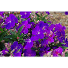 The Tibouchina 'Jules' is a vibrant shrub known for its striking purple flowers and lush green foliage. It thrives in sunny spots and brings a splash of color to gardens and landscapes. Easy to care for, this plant adds a tropical feel and attracts pollinators, making it a great choice for any outdoor space.