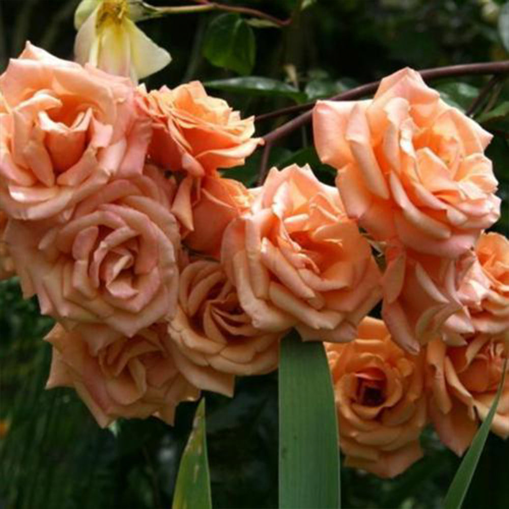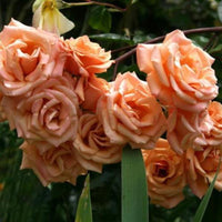 Floribunda - Orange apricot blens with mild fragrance.  Medium, double bloom form.  Blooms in flushes throughout the season.